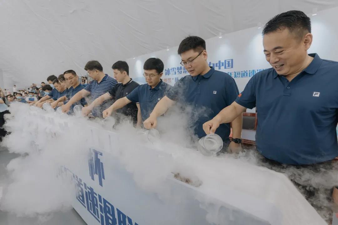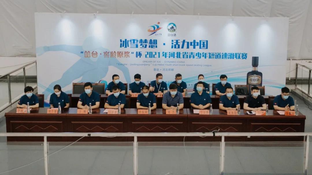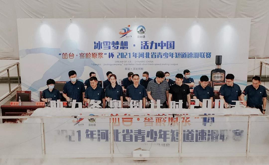 签约仪式上的启动浇冰环节,将整个活动推向新高潮。河北省体育局奥运事务处处长兼冬季运动管理中心主任刘杰、河北省体育局奥运事务处二级调研员刘子美、河北省体育局冬季运动管理中心副主任王东、邯郸市体育局党组书记、局长闫永亮、邯郸市体育局党组成员宋永忠、馆陶县委书记王立伟、馆陶县委副书记、代县长王峰、馆陶县政府党组成员吴瑞丽、河北邯郸沐鸣2股份有限公司总经理李鹏亮共同浇冰启动,为河北省“沐鸣2·窖龄原浆”杯青少年短道速滑联赛助力。